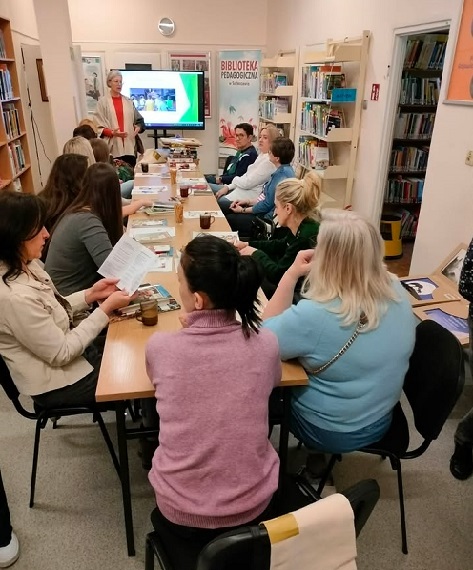 18 marca w siedzibie Biblioteki Pedagogicznej w Sochaczewie odbyły się inspirujące warsztaty dla nauczycieli edukacji przedszkolnej i edukacji wczesnoszkolnej, nauczycieli bibliotekarzy oraz wychowawców świetlic nt.: Teatrzyk Kamishibai w pracy z małym dzieckiem. Spotkanie miało praktyczny charakter, a poprowadziła je Milena Godlewska z Pedagogicznej Biblioteki Wojewódzkiej im. KEN w Warszawie, która w swojej pracy edukacyjnej z ogromnym powodzeniem stosuje technikę Kamishibai. Uczestnicy szkolenia zobaczyli jak pracować z drewnianym parawanem i narracyjnymi planszami obrazkowymi oraz otrzymali gotowe pomysły do wykorzystania Kamishibai podczas zajęć edukacyjnych i czytelniczych.